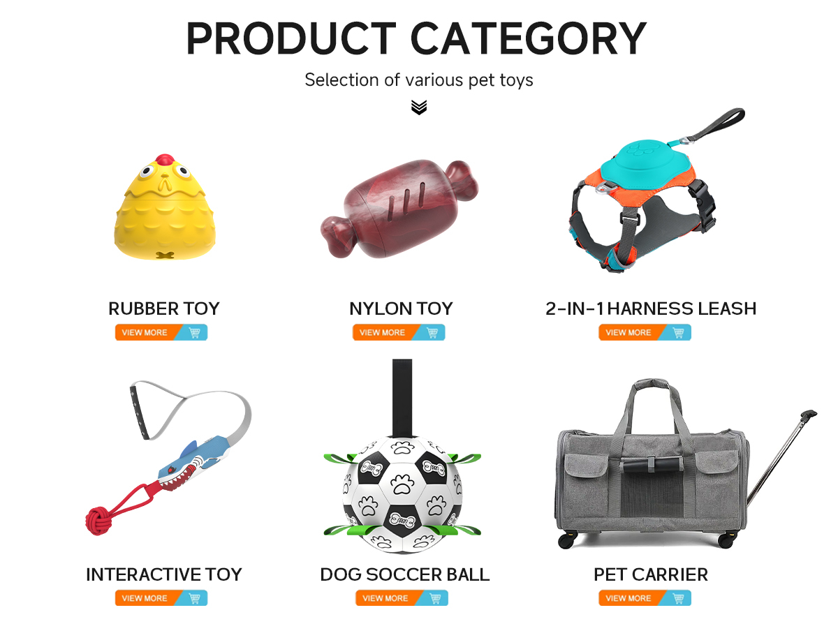 Ana ürünler:Pet oyuncaklar/Pet yaka ve koşum/Pet temizlik ve bakım/evcil hayvan taşıyıcı/Pet snumat Mat